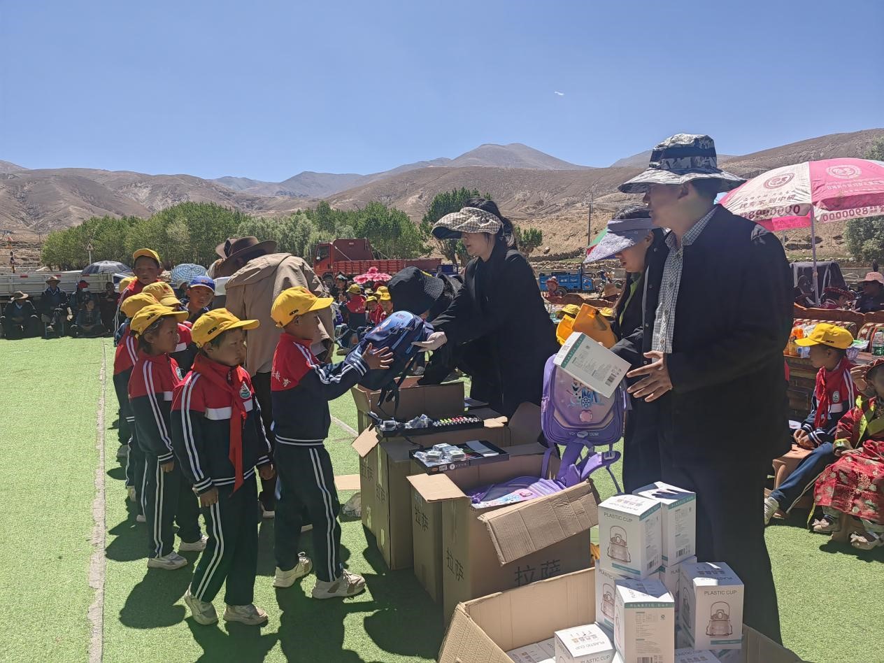 易明醫(yī)藥黨支部代表與藥監(jiān)局駐村工作隊、謝通門縣卡嘎鎮(zhèn)黨委共同參與了庫熱孜村的六一兒童節(jié)文藝表演活動。活動中,易明醫(yī)藥向村小學(xué)、幼兒園的兒童們發(fā)放了書包135個、文具盒115個、水彩筆40盒、水杯140個、安全小黃帽120頂、藏文鋼筆160支等共計價值約2萬元的節(jié)日慰問品。