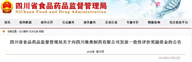 四川省食藥監(jiān)局發(fā)布公告稱,四川維奧制藥蒙脫石散通過(guò)仿制藥質(zhì)量和療效一致性評(píng)價(jià),將向其發(fā)放一致性評(píng)價(jià)獎(jiǎng)勵(lì)資金150萬(wàn)元。四川維奧制藥成為四川省第4個(gè)獲得一致性評(píng)價(jià)獎(jiǎng)勵(lì)資金的企業(yè)。